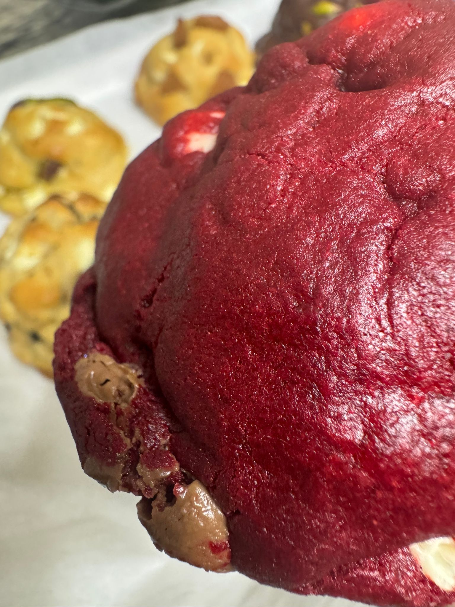 Soft, rich, and vibrant, this cookie reflects the classic red velvet flavor with a creamy touch inside. A cookie as special as it looks.